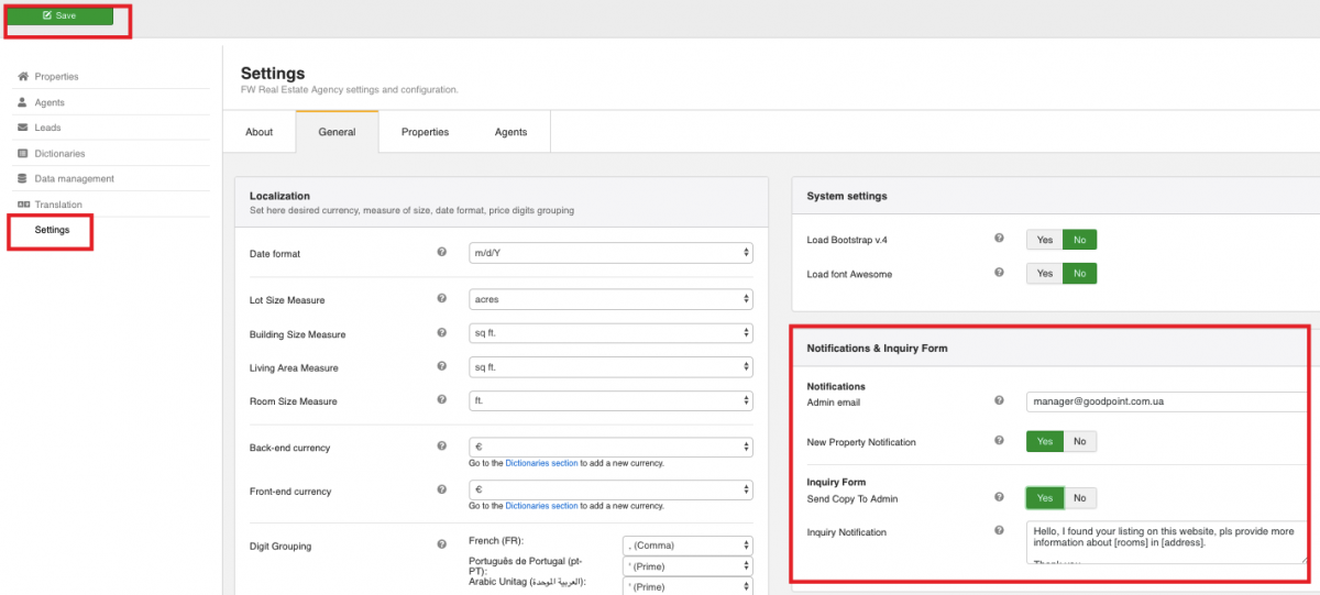 Being the first to know about the latest property updates can be crucial. FW Real Estate notification settings allow to receive updates about new properties that have entered the market. You can also configure your inquiry form. For example, you can send the copies of the inquiries to the admin and set an inquiry email template. In this tutorial, we will learn how to configure your notifications and inquiry form.