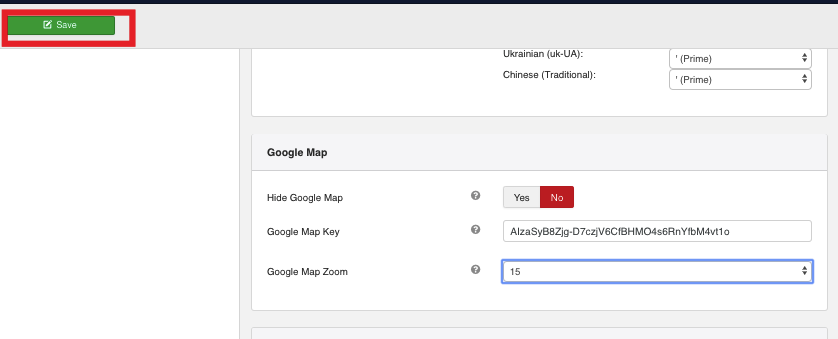Mouse over Google Map Key textbox and paste the Api Key you have copied.