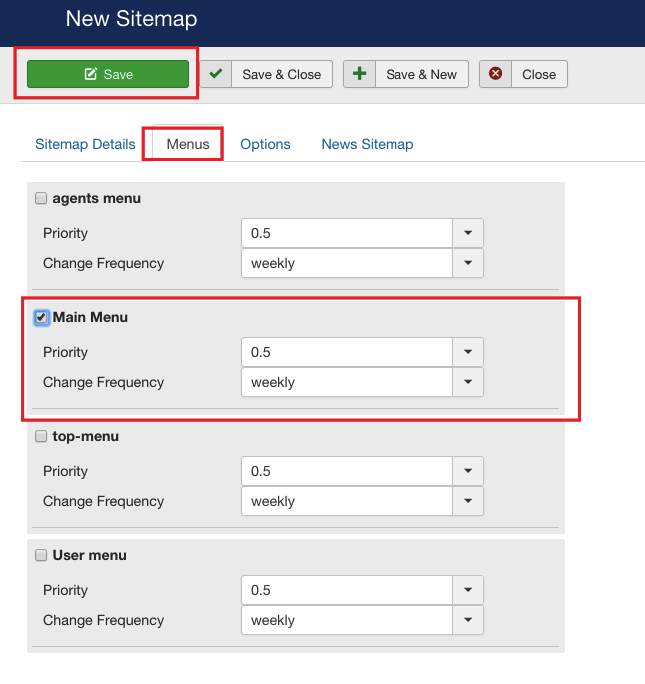 Check the Main Menu. As a result, the Xmap will generate the URLs for the selected menu, which will be subsequently indexed by the search engine.