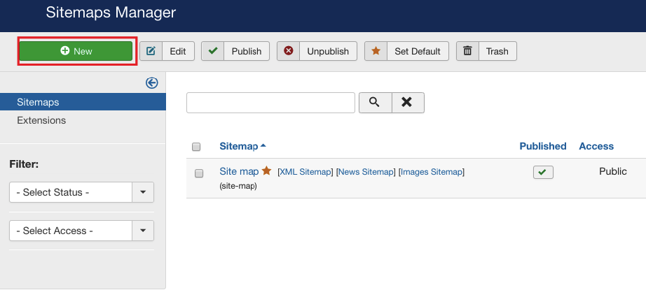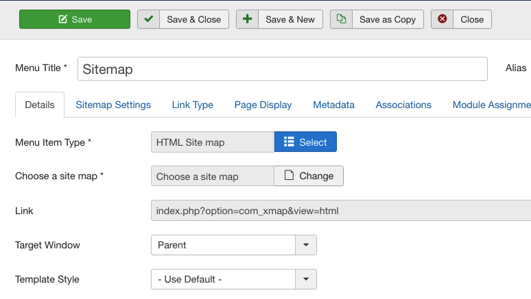 Now, we need to display a sitemap on the front-end. To make it happen, we need to create a menu item and assign Xmap layout to it.