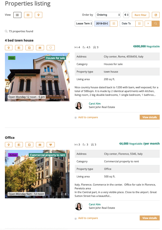 Go to Category dropdown and choose Flats for sale from the list. Thus, the properties belonging to the specified category will be displayed for List View menu item.