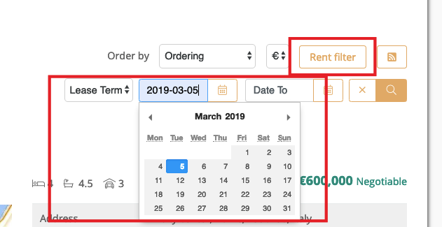 Mouse over Availability filter and choose Yes. Thus, you add the ability to search for properties available for a specific period of time. Just enter a start and end date of the rental period and get the list of available properties.
