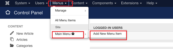 Locate Menus dropdown in the top menu of your Joomla control panel and click on it.
