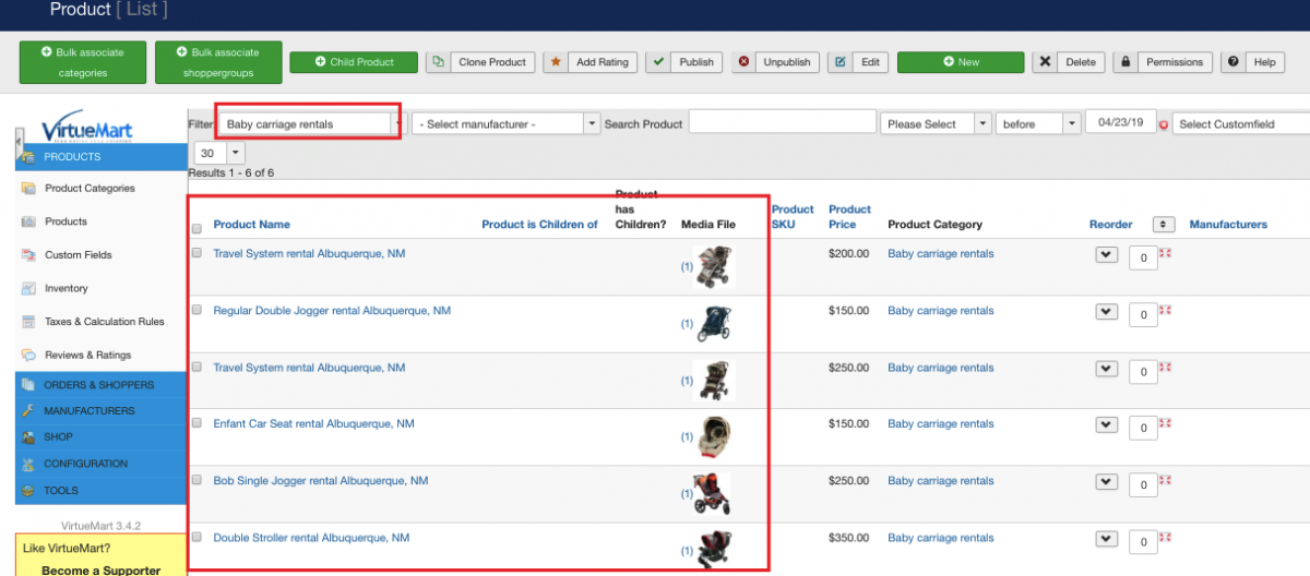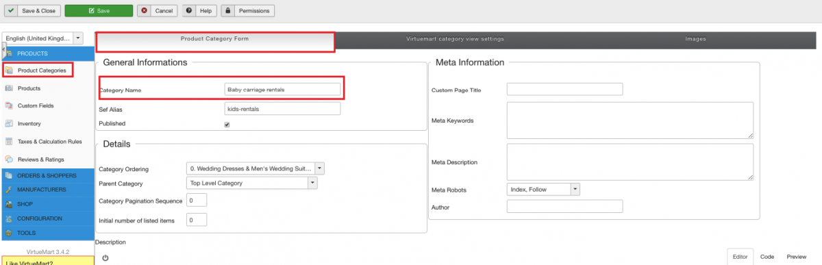 - Create Baby Carriage Rentals category. Make sure to configure it properly. Give it a title, make sure it is published, upload category image, etc.