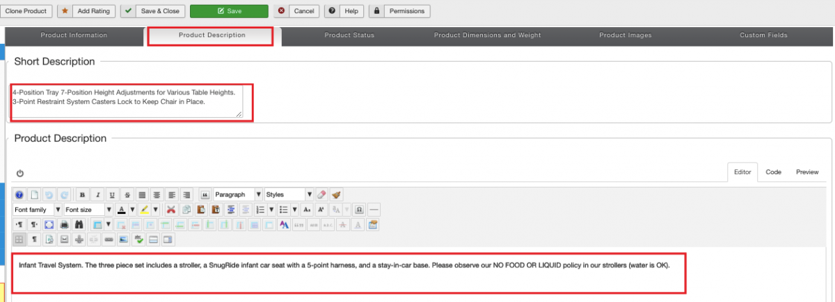 Add a description to the product.